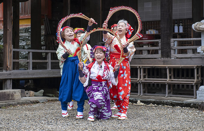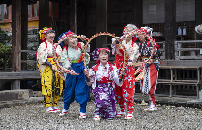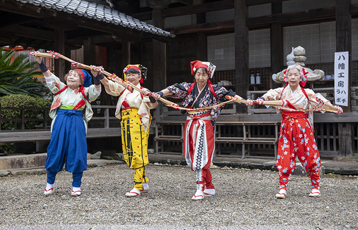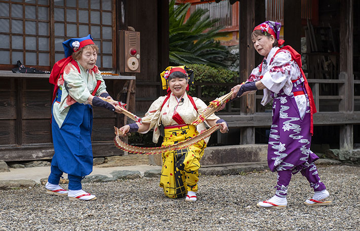 干支の蛇やうさぎ、稲穂、鳥居、宝船、富士など様々な縁起の良いモチーフを玉すだれで演じて頂きました。